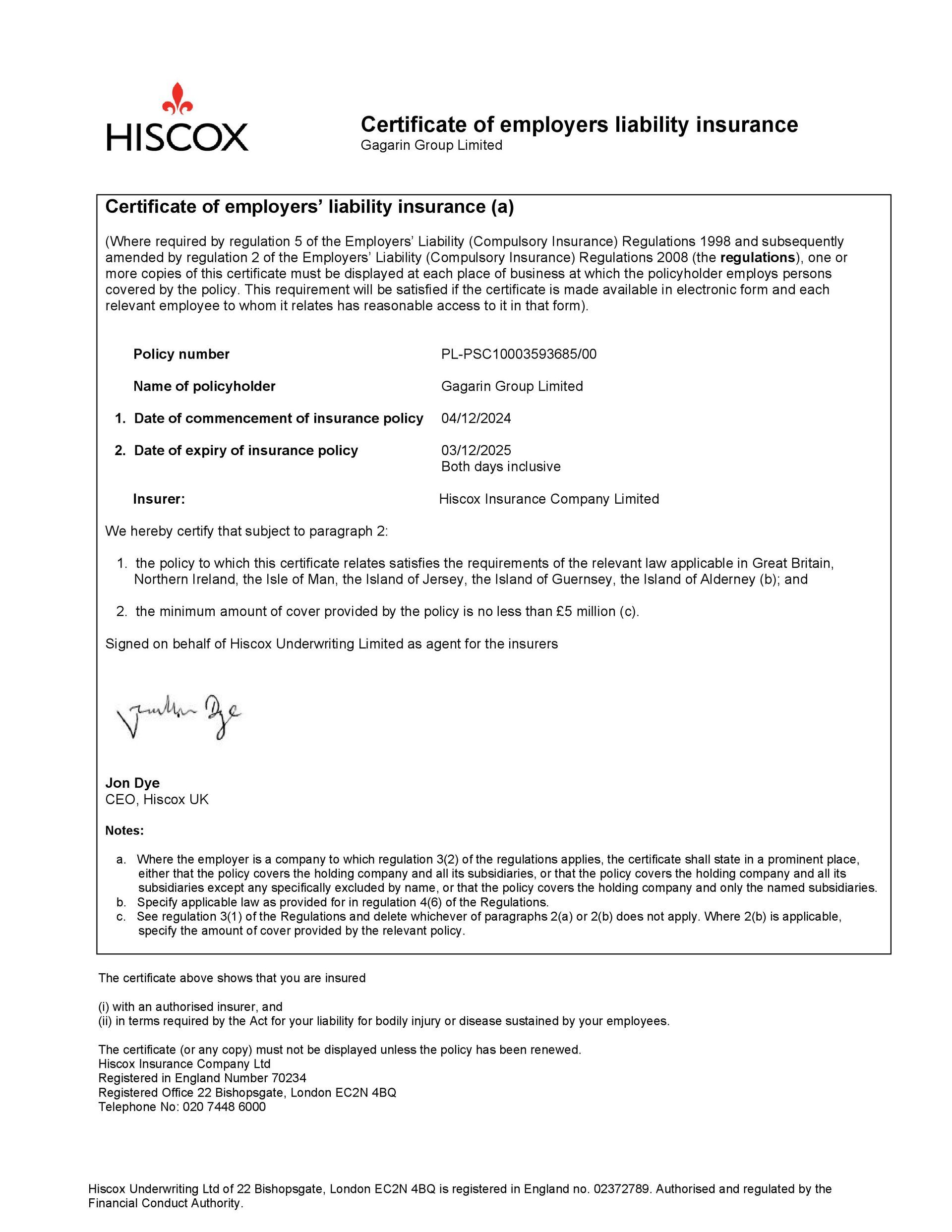 Aдрес: Gagarin Group Ltd, 167-169 Great Portland Street, Mayfair, 5th Floor, London, England, W1W 5PF